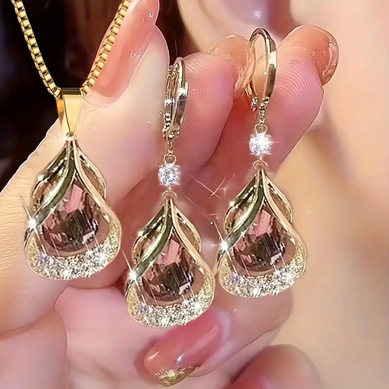 Add a touch of effortless elegance to your jewelry collection with this 3pcs Elegant Bohemian Imitation Cat Eye Stone Set, complete with teardrop dangle earrings and a matching pendant necklace. Designed with a stunning water-droplet silhouette and enhanced with clear crystal-like accents, this set blends modern charm with boho sophistication.