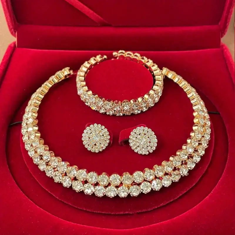 The luxurious design makes it the perfect complement to bridal gowns, evening dresses, and traditional wedding attire. Whether you’re the bride, bridesmaid, or attending a special event, this jewelry set ensures you shine with sophistication and charm.