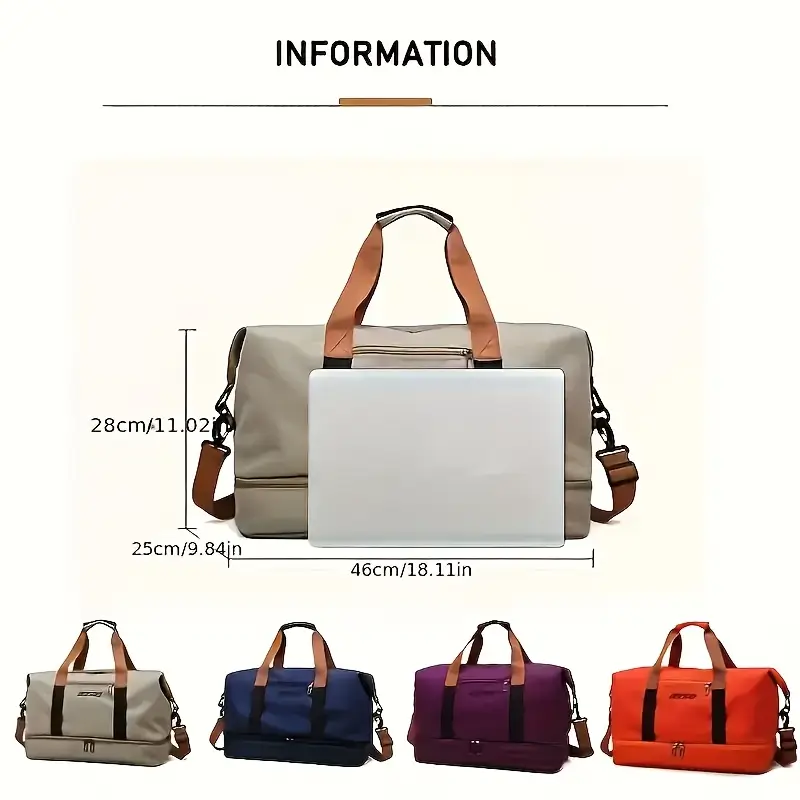 The Women’s Large Capacity Dry/Wet Separation Travel Tote Bag is the perfect companion for active and travel-loving women. Featuring a smart dual-compartment design, it separates wet and dry items with ease—ideal for swimsuits, towels, or workout gear. Crafted from durable, waterproof nylon, this tote is built to withstand everyday wear while maintaining a sleek, fashionable look.